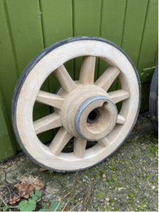 As traditional wheelwrights most of our wheels are made from English hard woods with an Elm Hub, Oak Spokes and Ash Felloes. However wheels for specialist applications have been made from different timbers. "